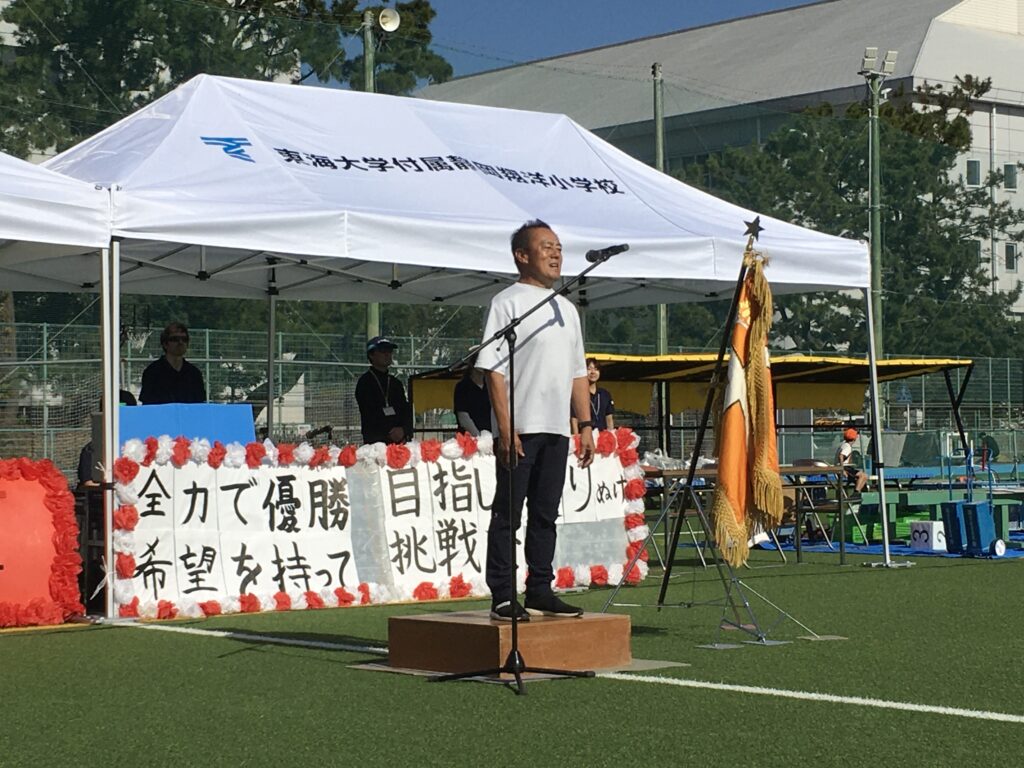 今日は翔洋小の運動会。明るい太陽が皆さんを応援しに来てくれましたね。スローガン『全力で優勝目指して走りぬけ、希望を持って挑戦だ』のもと、子どもたちは励ましあい、最後まであきらめずに戦いました。保護者の皆様のあたたかい応援と拍手、本当にありがとうございました。
