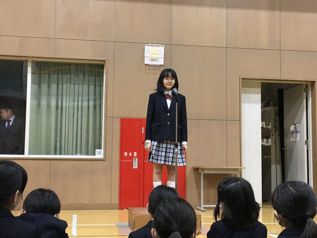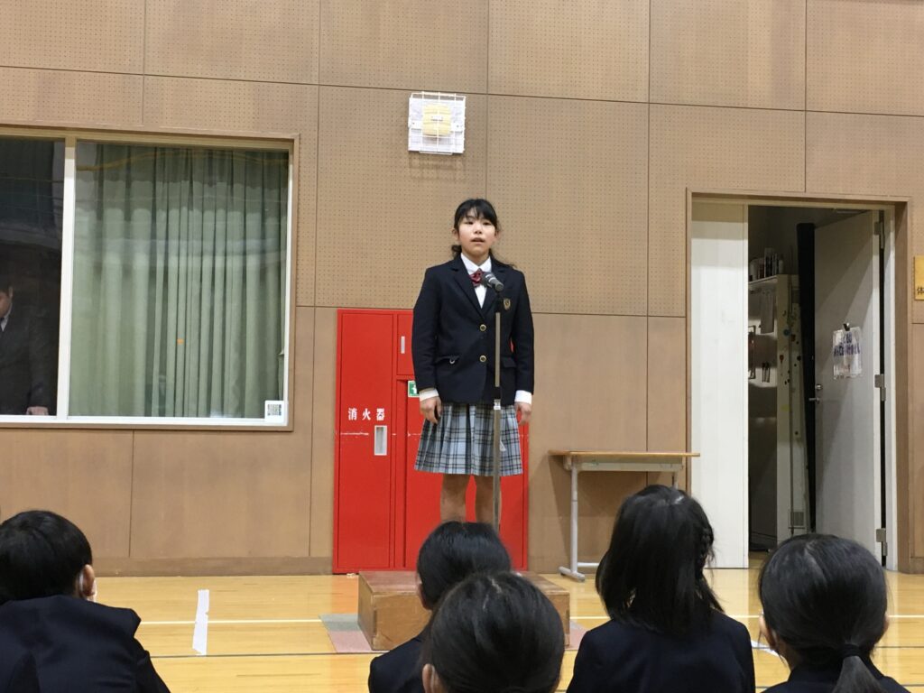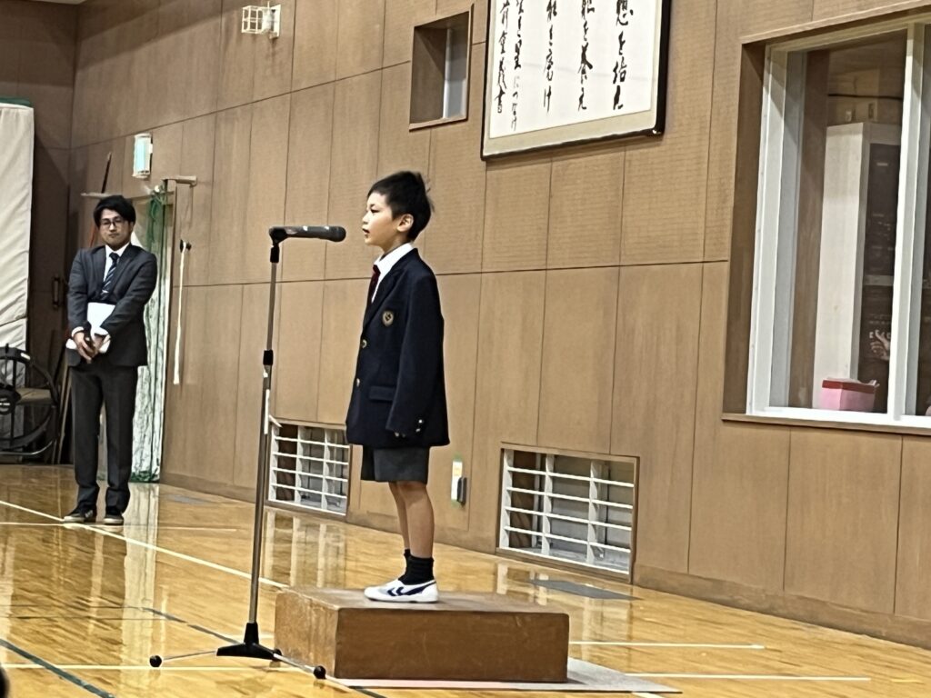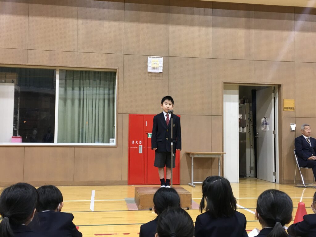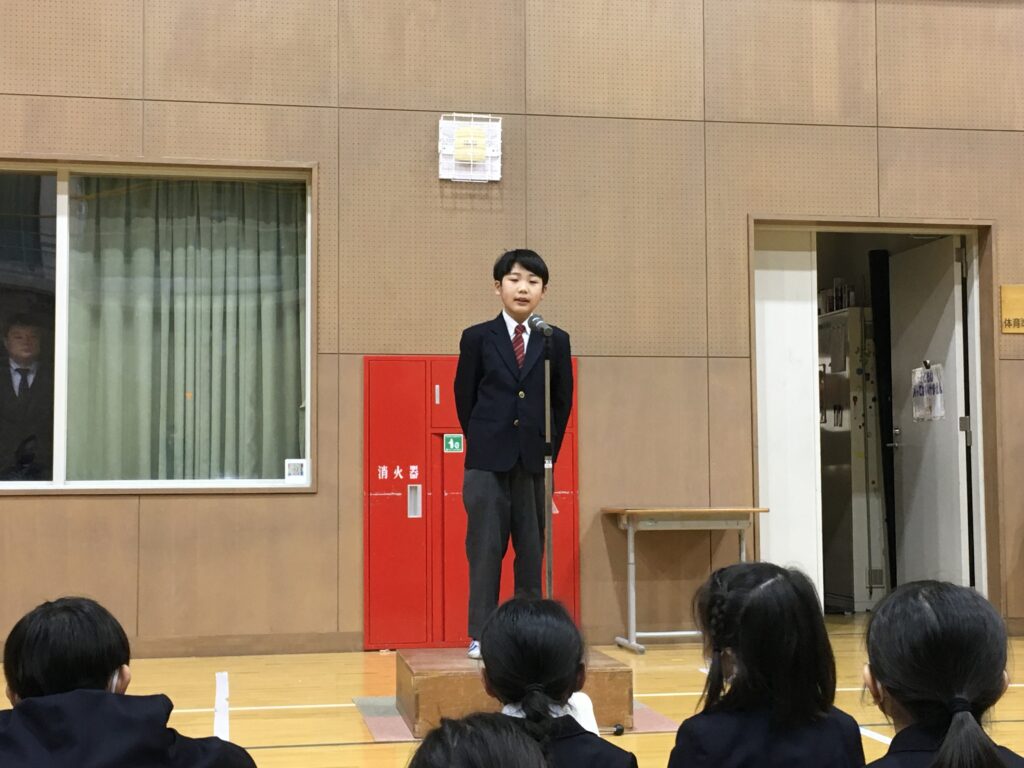次に、学年代表の児童が、2学期や冬休みの思い出と3学期の目標について発表しました。