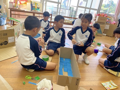 みんなでアイデアを出し合い、作り続けてきたものが遂に完成しました👏 明日はいよいよ楽しいことを行います!とてもワクワクしている子ども達です!