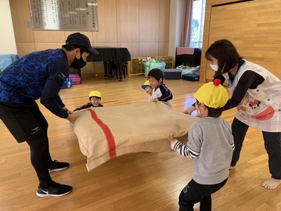 『羊さんと遊んじゃおう』がありました!ボール遊びをしたり、サーキットをしたり思いきり体を動かしていた子ども達!楽しそうな笑顔がたくさん見られました♪
