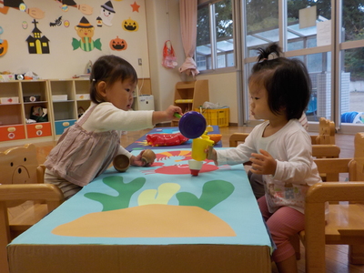 「お店屋さんになりたい!」とポテトを作り始めました!友達に作り方を聞いて真似し、本物に近づけようと工夫していました!お弁当は年少さんと一緒に食べ「遠足みたいで楽しいね」とニコニコでした☺