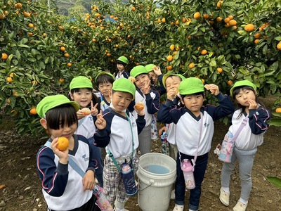 みかん狩りに行きました!おいしいみかんの見分け方や、みかんができるまでの話を聞いていざ実食!「甘くておいしい!!」とたくさん食べて大満足の子ども達です!
