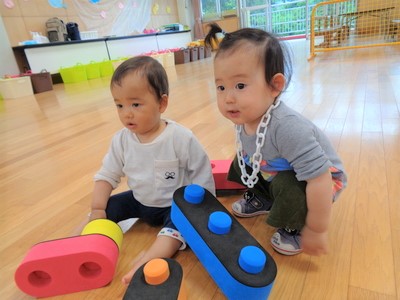 みんなでたくさん遊びました!雨の降る前に砂場で遊んだり、ホールでブロック遊びをしたり!好きな遊びを見つけ、大満足のようでした!