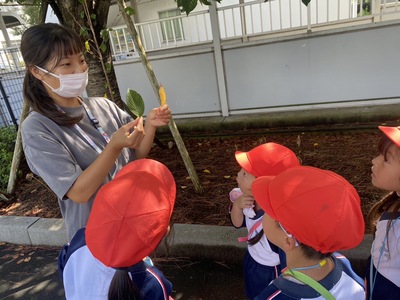 キャンパス内の散歩へ行きました!どんぐりや葉っぱ、虫などたくさんの自然を発見!秋の自然を体いっぱい感じていました☆