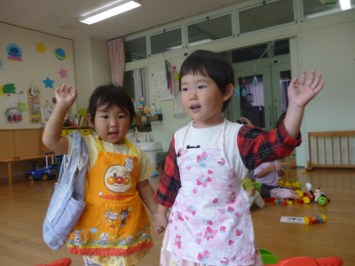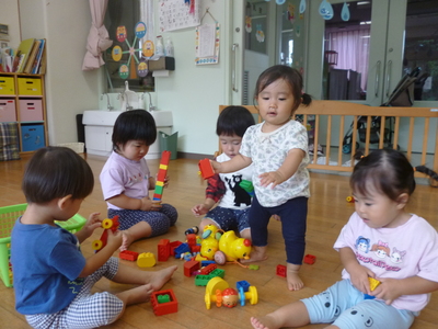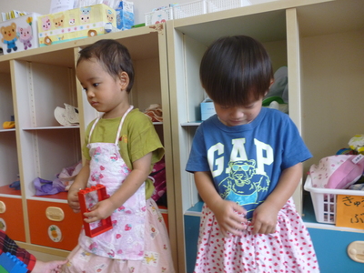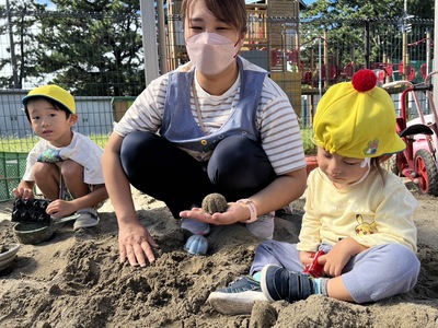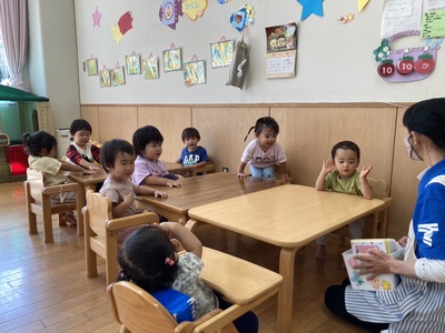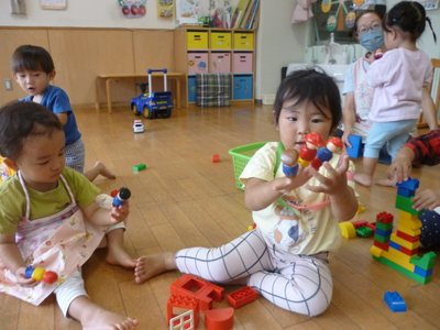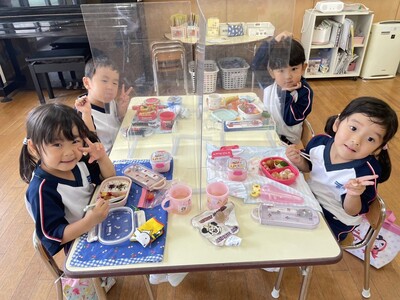 みんなでおままごとをして遊びました!「どうぞ!」「ありがとう!」と言葉を交わしながら なかよく遊んでいました♪