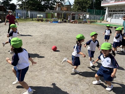 転がしドッチボールで遊びました!「逃げろー!」「爆弾がきたー!」と大盛り上がり!ボールの爆弾にぶつからないように、一生懸命逃げていました!