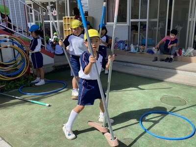 幼稚園オリンピックをしました!メダルを目指して一生懸命練習をする子ども達!諦めずに挑戦し、合格できると大喜びでした!