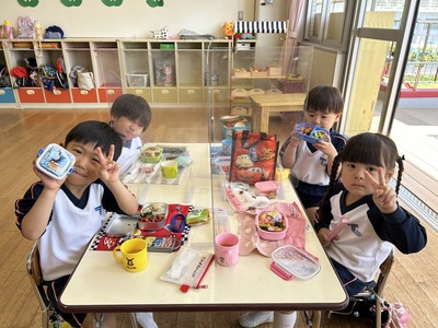 初めてのお弁当!「早く食べたい!」と朝から楽しみにしていた子ども達!「おいしいね!」と嬉しそうに食べ、みんなピカピカ完食でした♪