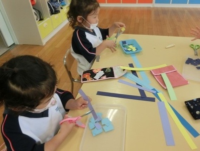 大好きな人へのプレゼント作りをしました!画用紙をハサミでチョキン!!トイレットペーパーの芯にペタペタつけて飾り付け完成!!ありがとうの気持ちを込めて大切に作りました!何ができるかはお楽しみ!