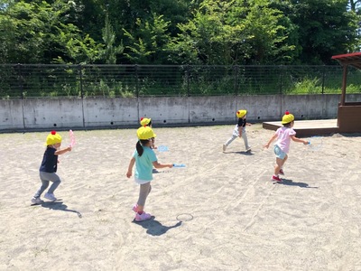 お姉さん先生とボール遊びをしました!難しいミッションにどんどんクリアしていく子ども達!最後にはサマーキャンプのグループに分かれて対決をしました!「負けないぞ~!」と最後まで楽しんでいました☆