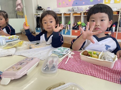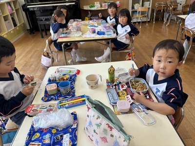 朝の支度やお弁当!初めてのことがいっぱいな年少さん!着替えも一生懸命頑張っていました!外でもたくさん遊べて大満足な一日でした♪