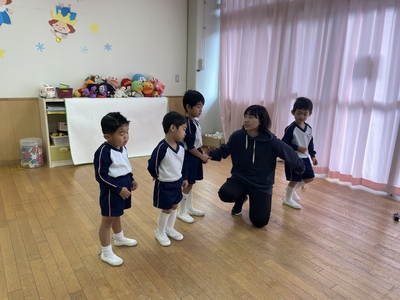 外に行く準備も上手になってきました!最近はみんなで電車になって歩くことに挑戦しています!広いグランドでは走って体を温め、元気に遊びました!